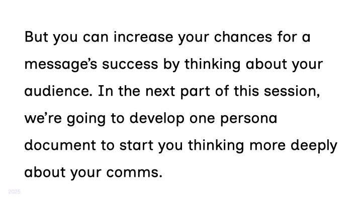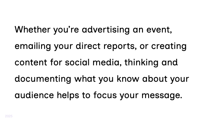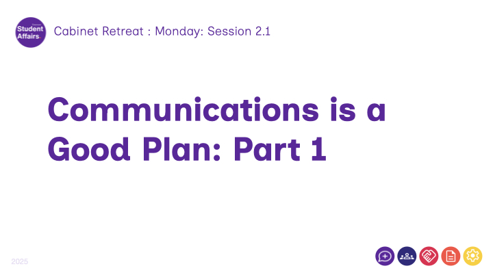 Delivered over the course of a two-day retreat for leaders within the Student Affairs Division, this workshop encouraged participants to think in a more structured way about deliverables related to communication.