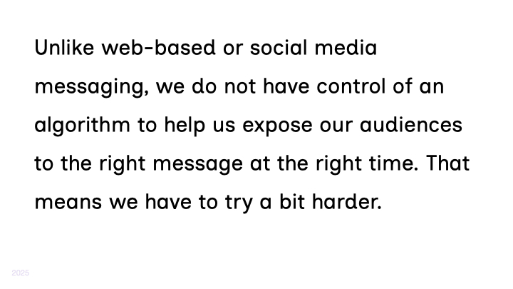 All of this helped to create better communication around these meetings. An additional piece of communication was added in mid-2025 at the beginning of the academic year with a pre- and post-meeting email. The pre-email outlined guest speakers, agenda items, and confirmed location and time. The post-email contained details of the slide deck (including slides used by guests) as well as any post-meeting follow up that was required.